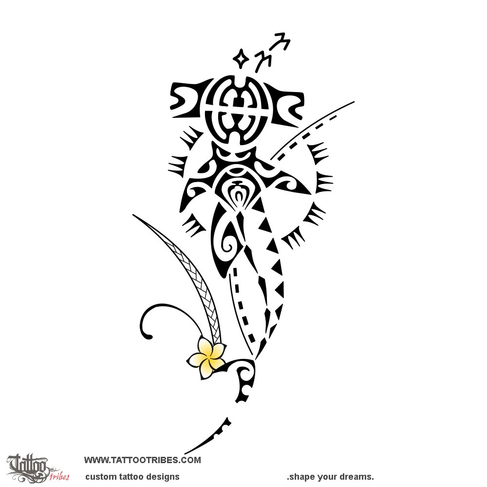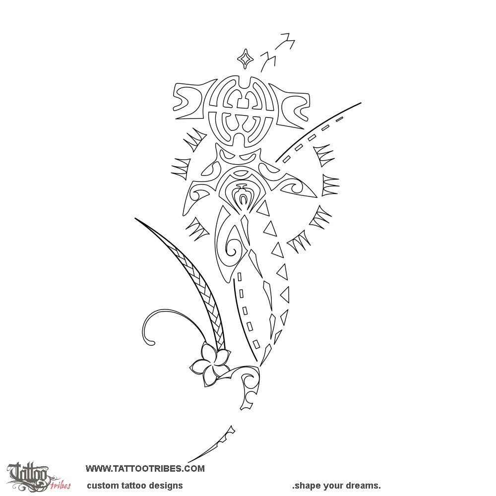 This Polynesian hammerhead shark tattoo prepared for Carissa was designed to integrate a small turtle tattoo she already had, and since the turtle is a symbol of family, we placed a koru for new start and braid for union next to it.