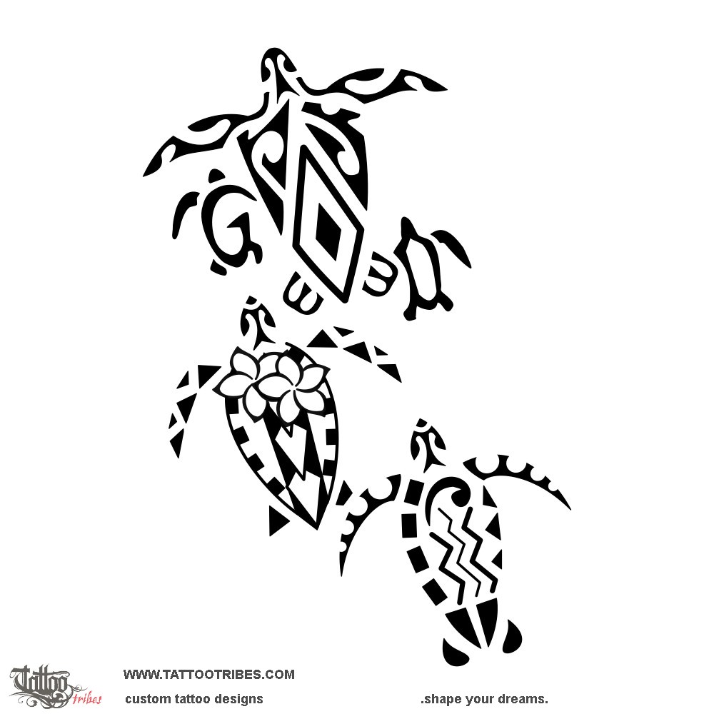 This tattoo of three small turtles in Polynesian style was prepared for Giorgio and his siblings as a family tattoo.