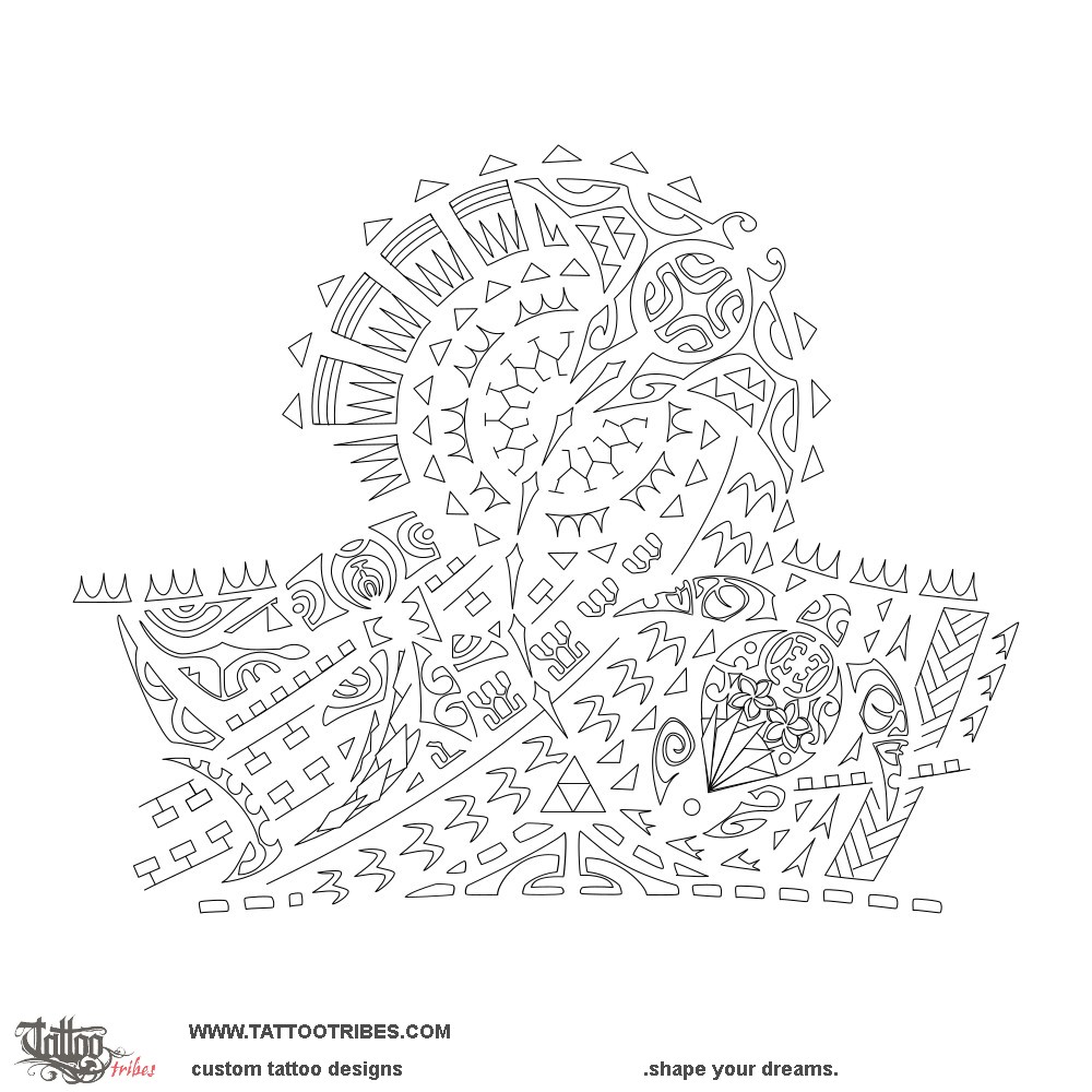 This Polynesian half sleeve tattoo was designed for Ales and it includes elements related to his story and family.